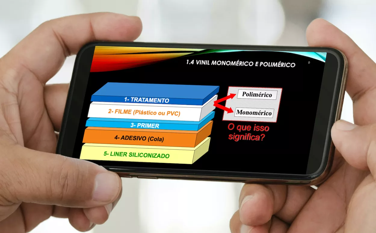 Sim, o e-book detalha os vários tipos de vinil adesivo disponíveis no mercado e suas aplicações ideais. Isso inclui vinis para uso interno e externo, vinis impressos e não impressos, e suas respectivas propriedades e benefícios.